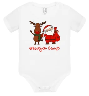 Body dla dziecka na święta ze świątecznym nadrukiem. Body dziecięce z krótkim rękawem. Wykończenie pod szyją - lycrą. Zapinane na ramieniu i w kroku. Ściągacz 1x1.