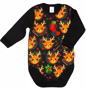 Body długi rękaw Świąteczne Reniferki CZARNE r 62 KLEKLE