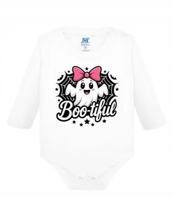 Body dziecięce białe nadruk z napisem BOO-tiful nadruk DUSZEK HALLOWEEN 3M