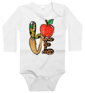 💙 Body dziecięce z długim rękawem z nadrukiem Napis Love Z Jabłkiem Panterka Na Dzień Jabłka Białe 62/68 nr wzoru: nr wzoru: 121101134897 👶 Twoje dziecko zasługuje na wszystko, co najlepsze — a nasze bawełniane body z nadrukiem to gwarancja wygody, bezpieczeństwa i… odrobiny magii dzieciństwa! 🐉✨
