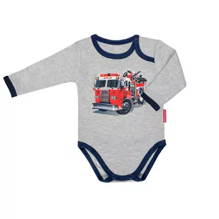 ✅Wyjątkowy Design: Bawełniane body dziecięce dla niemowląt, z długim rękawem firmy Marcinkowski. Kolor szary, z nadrukiem straż pożarna - świetny wybór dla chłopca!