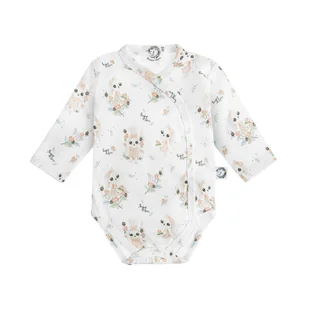 * Opakowanie produktu nie stanowi zabawki * Nie zaleca się stosowania wybielaczy ani zmiękczaczy, które mogą powodować podrażnienia skóry. Nieprzestrzeganie powyższych zaleceń może prowadzić do nieprawidłowego użytkowania produktu, co może wpłynąć na komfort i bezpieczeństwo dziecka. Jeśli masz jakiekolwiek wątpliwości dotyczące użytkowania produktu, skontaktuj się z producentem. Body kopertowe bawełna organiczna z długim rękawem 56 cm Wysokiej jakości organiczna bawełna, zapewnia odpowiednią cyrkulację powietrza, zapobiegając przegrzewaniu skóry dziecka. Bezpieczne zapięcie na napy - ułatwia szybkie przewijanie i ubieranie maluszka.