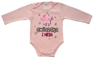 Body niemowlęce GWIAZDKA Z NIEBA pudrowy róż 8686 Body z nadrukiem w pięknych, żywych kolorach uszyte z bawełny. Sprawdzą się świetnie na każdy dzień oraz na wyjątkowe okazje. Są miękkie, delikatne i przyjemne w dotyku. Bawełna, z której zostały uszyte, jest w 100% bezpieczna dla wrażliwej skóry Twojego maluszka. Z troski o Twoje maleństwo szyjemy ubranka, które: