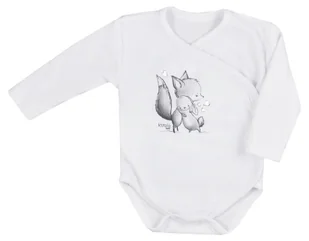 Białe body z długim rękawem wykonane z 100% bawełny. Zapinane kopertowo i w kroku na zatrzaski. Wygodny dla maluszków, jak i ich opiekunów. Rozpinane kopertowo nie trzeba wkładać przez delikatną główkę dziecka. Zatrzaski wyprodukowane bez niklu - nie uczulają i nie podrażniają skóry dziecka.