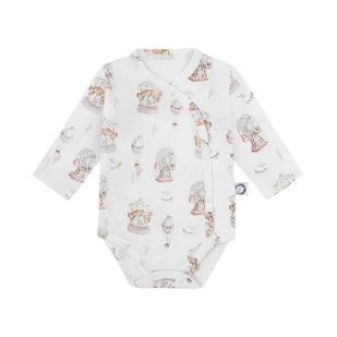 * Opakowanie produktu nie stanowi zabawki * Nie zaleca się stosowania wybielaczy ani zmiękczaczy, które mogą powodować podrażnienia skóry. Nieprzestrzeganie powyższych zaleceń może prowadzić do nieprawidłowego użytkowania produktu, co może wpłynąć na komfort i bezpieczeństwo dziecka. Jeśli masz jakiekolwiek wątpliwości dotyczące użytkowania produktu, skontaktuj się z producentem. Body kopertowe bawełna organiczna z długim rękawem 50 cm Wysokiej jakości organiczna bawełna, zapewnia odpowiednią cyrkulację powietrza, zapobiegając przegrzewaniu skóry dziecka. Bezpieczne zapięcie na napy - ułatwia szybkie przewijanie i ubieranie maluszka.