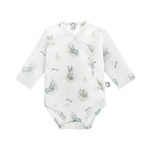 Nieprzestrzeganie powyższych zaleceń może prowadzić do nieprawidłowego użytkowania produktu, co może wpłynąć na komfort i bezpieczeństwo dziecka. Jeśli masz jakiekolwiek wątpliwości dotyczące użytkowania produktu, skontaktuj się z producentem. . Body kopertowe bawełna organiczna z długim rękawem 50 cm Wysokiej jakości organiczna bawełna, zapewnia odpowiednią cyrkulację powietrza, zapobiegając przegrzewaniu skóry dziecka. Bezpieczne zapięcie na napy - ułatwia szybkie przewijanie i ubieranie maluszka. 100% bawełna organiczna, bawełna i nadruk posiadają Certyfikat OEKO-TEX 100 klasa I *prać w temp.