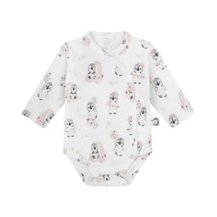 * Opakowanie produktu nie stanowi zabawki * Nie zaleca się stosowania wybielaczy ani zmiękczaczy, które mogą powodować podrażnienia skóry. Nieprzestrzeganie powyższych zaleceń może prowadzić do nieprawidłowego użytkowania produktu, co może wpłynąć na komfort i bezpieczeństwo dziecka. Jeśli masz jakiekolwiek wątpliwości dotyczące użytkowania produktu, skontaktuj się z producentem. Body kopertowe bawełna organiczna z długim rękawem 50 cm Wysokiej jakości organiczna bawełna, zapewnia odpowiednią cyrkulację powietrza, zapobiegając przegrzewaniu skóry dziecka. Bezpieczne zapięcie na napy - ułatwia szybkie przewijanie i ubieranie maluszka.