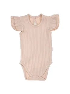 Dziewczęce body bawełniane na krótki rękaw z falbanką beżowe Nicol,r.56