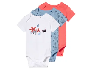 lupilu® Body niemowlęce z bawełny, 3 sztuki (50/56, Koralowy/jasnoniebieski/biały)