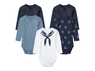 lupilu® Body niemowlęce z biobawełny, 5 sztuk (74/80, Granatowy/biały/niebieski)
