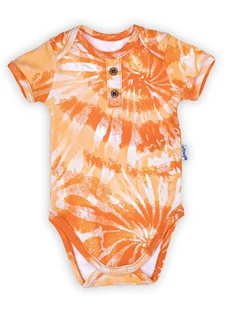 Wyprodukowano w Polsce Body polo dla chłopca z krótkim rękawem, idealne w ciepłe dni, uszyte z bawełny, w druk tie dye - wzór w odcieniach pomarańczu. Materi...