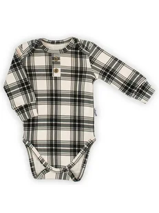 Niemowlęce body polo z długim rękawem w kratkę beżowe Nicol,r.74