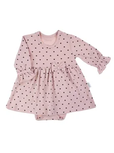 Niemowlęce sukienko-body długi rękaw dla dziewczynki serduszka pudrowa Nicol,r.56
