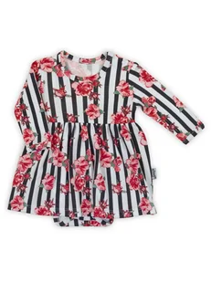 Niemowlęce sukienko-body z długim rękawem kwiaty białe Nicol,r.56