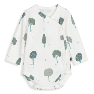 Body niemowlęce kopertowe Trees rozmiar 56 marki Pink No More. Piękne białe body z motywem drzewek, idealnie sprawdzi się jako pierwsze ubranko dla maluszka. Bawełniane body niemowlęce to niezbędny element w każdej wyprawce. Zostały uszyte w Polsce z dzianiny interlock dzięki temu są miękkie i aksamitne w dotyku. Dodatkowo body dla niemowlaka od Pink No More są antyalergiczne i bezpieczne dla skóry malucha.