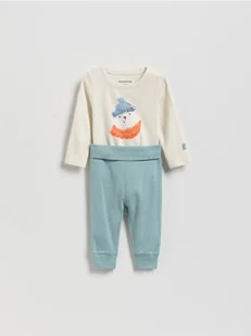Komplet składający się z body i spodni, wykonany z bawełny.