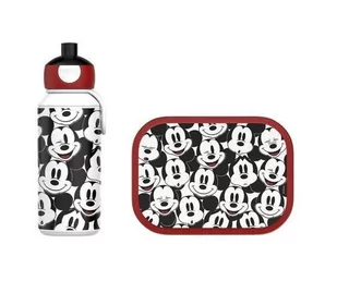 Zestaw składający się z pudełka śniadaniowego i butelki ozdobiony efektownym, kolorowym motywem Myszki. Śniadaniówka to idealny pojemnik na kanapkę dla dziecka do szkoły czy na wycieczkę. Posiada on dodatkowy wkład przeznaczony na warzywa lub owoce, po jego wyjęciu pomieści do 4 kanapek. Jest łatwy w utrzymaniu czystości - nadaje się do mycia w zmywarce, w zestawie również jest mały widelczyk. Wymiary lunchboxa: