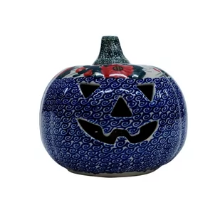 Kolejna już duża dynia ceramiczna, element dekoracyjny do każdego ogrodu, tarasu lub wnętrza Twojego domu, podczas celebrowania Halloween bądź w okresie jesiennym, kiedy to liście lecą z drzew, roślinność obumiera a nasze śliczne ręcznie wykonane zdobienia ceramiki artystycznej nadają charakteru wystroju Twojego domu. Dynia posiada otwór, który umożliwia zastosowanie świeczki. Wyrób ceramiczny ręcznie malowany podszkliwnie, do dekoracji, strasznie piękny, ręcznie wykonany z miłością i pasją tworzenia. Dekorowanie mieszkań i domów dyniami innymi ozdobami staje się bardzo popularne. Sezonowe przystrajanie znajduje coraz więcej zwolenników i miłośników, dbamy o wygląd naszych domostw, po to aby przebywało się w nich przyjemniej.