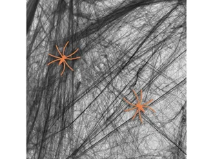 Czarna pajęczyna z pomarańczowymi pająkami. Dekoracja idealna na Halloween. Waga: 60 g. Opakowanie: 1 szt. pajęczyny, 2 szt. pająków.