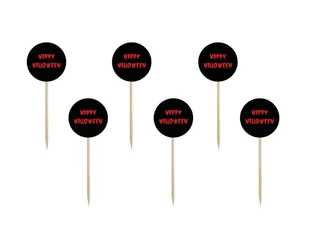 Papierowe dekoracje na piku z krwawym napisem Happy Halloween, idealna dekoracja tortu czy muffinek.