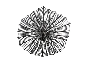Podkładka pod talerz w kształcie sieci pająka. Idealna na Halloween. Materiał: plastik. Kolor: czarny. Średnica: 38 cm. Produkt wielokrotnego użytku.