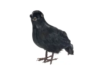 Dekoracja czarna wrona pokryta piórami. Idealna na Halloween. Wysokość: ok. 22 cm. Opakowanie: 1 szt.