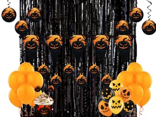 Zestaw dekoracji na halloween. Dzięki niemu udekorujesz pomieszczenie w motywie strasznej dyni. Opakowanie: 82 elem.