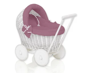 Wiklinowy Wózek Dla Lalek Pchacz Biały Z Pościelką Róż Retro I Miękką Wyściółką Stella