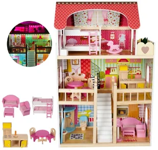 3; ilość pokoi: 5 + balkon W ZESTAWIE konik na biegunach toaletka łóżko piętrowe stolik + 2 krzesła stolik fotel sofa meblościanka kuchenna umywalka z lustrem prysznic toaleta lampa kwiatek domek Wysoka jakość wykonania Zestaw jest wykonany z wysokiej jakości materiałów, a cechuje go piękna i atrakcyjna kolorystyka oraz duża dbałością o każdy detal. Doskonały wybór dla Twojego dziecka! IDEALNY NA PREZENT Domek dla lalek z drewna to wspaniały pomysł na prezent, który wywoła szeroki uśmiech na twarzy Twojej córeczki! To zabawka, która pobudza wyobraźnię i kreatywność. Dziewczynki pokochają możliwość przemeblowywania i nieskończone możliwości ciekawej zabawy według różnych scenariusz i historii.