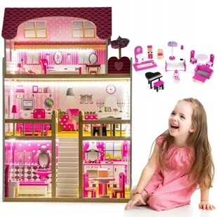DREWNIANY DOMEK DLA LALEK LED ECOTOYS ✅Trzypiętrowy domek dla lalek od ECOTOYS to połączenie klasycznego designu z nowoczesnymi rozwiązaniami. Zawiera 5 stylowych pomieszczeń, w których każde zaaranżowano w innym stylu. Dzięki realistycznemu odwzorowaniu wnętrz i dodatkowemu oświetleniu LED, zabawa staje się jeszcze bardziej wciągająca. ✅Wyprofilowany dach zwiększa komfort użytkowania, a cała konstrukcja została wykonana z trwałego drewna, zapewniając bezpieczeństwo i stabilność. Brak ostrych krawędzi sprawia, że domek jest w pełni bezpieczny dla dzieci.