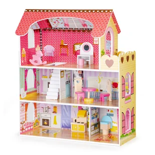 Ecotoys, drewniany domek dla lalek z oświetleniem LED i zestawem mebelków
