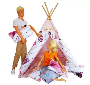 Super tipi dla lalek np. typu Barbie z motywem w pastelowo różowe piórka . Ten model cieszy się niesłabnącą popularnością. Zaproś swoje lalki do ogrodu , na biwak , na plażę w lato lub pod namiot. Wspaniała zabawa dla każdej dziewczynki.