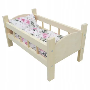 Przepiękne drewniane łóżeczko dla lalek, z drewna świerkowego z kompletem pościeli.