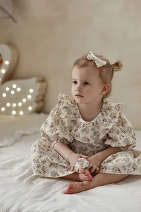 Przedmiotem tej aukcji jest sukienka dla dziewczynki, rozm. 104 Sukienka dla dziewczynki i lalki z muślinu, cynamonowa łączka na kremie, Wielkanoc. Wiosenno ...