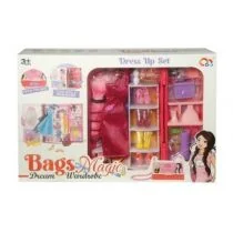 Kolorowa szafa dla lalek, którą można nosić jako torebkę. Po otwarciu wystarczy obrócić torebkę i mamy szafę. Szafa kryje w sobie wiele niespodzianek. Posiada w swoim wyposażeniu: lustro, sukienki, buty, biżuterię i torebki.