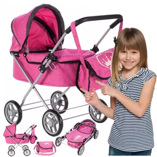 GŁĘBOKI WÓZEK DLA LALEK Z GONDOLĄ I TORBĄ NA AKCESORIA Śliczny wózek dla lalek w pięknym różowym kolorze z pewnością spodoba się każdej małej dziewczynce. W tym uroczym wózeczku małą Mamusia może zabrać swoją ulubioną lalkę na spacer do domu i na powietrzu .