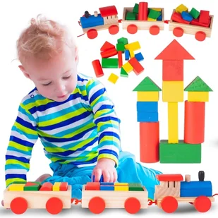 Drewniany Pociąg Kolejka Ciuchcia z Klockami 19el.