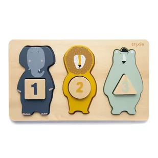 Dzieci mogą poznać kolory, zwierzęta i liczby. Wiele grubych puzzli ułatwia małym rączkom manipulowanie nimi, poprawiając po drodze ich zdolności motoryczne. Puzzle i zwierzęta są wykonane w 100% z drewna z certyfikatem FSC©. Wszystkie farby na tym produkcie są na bazie wody, bezpieczne dla dzieci i nietoksyczne. Wymiary: 13 x 22 x 2cm