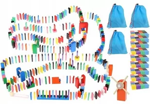 DREWNIANE DOMINO KULODROM - 1131 ELEMENTÓW 1131 ELEMENTÓW – w zestawie znajduje się 1080 klocków o 12 kolorach (brązowy, czarny, 2 odcienie niebieskiego, pom...