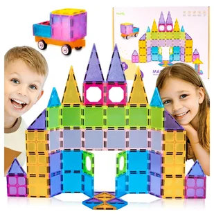 Budowanie ćwiczy koncentrację, cierpliwość i precyzję dłoni, a przy okazji wprowadza pojęcia matematyczne (figury, symetria, równowaga, liczenie) oraz podstawy inżynierii (nośność, stabilność). Wspólne budowle sprzyjają współpracy, komunikacji i dzieleniu się zadaniami. ✅Magnetyczny montaż 3D Płytki łączą się „same” – magnes przyciąga element do elementu i pozwala tworzyć bryły: zamki, domy, garaże, mury, pojazdy czy rakiety. Dzięki różnym kształtom z łatwością powstają dachy, wieże i kopuły.