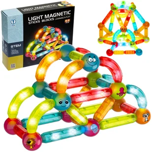 Świecące Klocki magnetyczne patyczki kulki Duży zestaw konstrukcyjny 52 elementy Kolorowe świecące klocki magnetyczne w kształcie patyczków nie tylko gwarant...