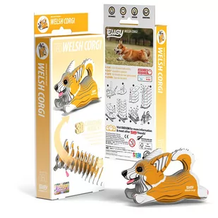 Piesek Corgi Eugy Eko Układanka 3D. Seria układanek Eugy, otrzymała Nagrodę Główną konkursu Świat Przyjazny Dziecku! Eugy zaprojektowane w Nowej Zelandii są wykonane z przyjaznego dla środowiska kartonu pochodzącego z recyklingu i farby na bazie ryżu. Zestaw zawiera ponumerowane elementy układanki, nietoksyczny klej, oczka oraz instrukcję do zbudowania psa. Zbierz całą serię zwierząt, ptaków, dinozaurów i wiele innych. Dla dzieci w wieku 6 lat+.