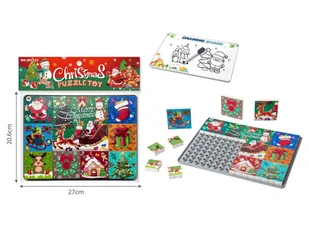 PUZZLE ŚWIĄTECZNE DLA DZIECI – ZESTAW KLOCKÓW UKŁADANKA + TABLICA DO RYSOWANIA Kolorowa układanka świąteczna z motywami Mikołaja, choinki, prezentów i renifera Zestaw zawiera puzzle-klocki do układania obrazków oraz tablicę do rysowania z mazakiem Wymiary całego zestawu: 27 x 20,6 cm – idealne do zabawy na stole lub podłodze W komplecie wiele elementów do układania, które rozwijają logiczne myślenie i wyobraźnię dziecka Tablica do rysowania pozwala na dodatkową kreatywną zabawę – malowanie i zmazywanie obrazków Odpowiednie dla dzieci od 3. roku życia Solidne wykonanie z bezpiecznych materiałów, odporne na wielokrotne użytkowanie Świetny pomysł na prezent bożonarodzeniowy lub zabawę w okresie świątecznym Edukacja i zabawa w jednym – idealny zestaw, aby wprowadzić dziecko w magiczny klimat Świąt!