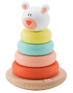 sympatyczny niedźwiadek składający się z 6 ringów magnetycznych oraz główki misia należy stworzyć nakładając magnetyczne kręgi jeden na drugim wg odpowiedniej kolejności dodatkowo miś umieszczony został na półkolistej podstawie,