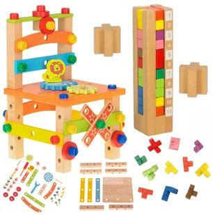 Warsztat Krzesło Edukacyjne Drewniane Zestaw Konstrukcyjny Klocki Układanka