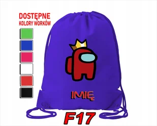 WOREK SZKOLNY sportowy , na wf, na trening, na buty, na wyjście ze znajomymi + IMIĘ ! NUMER WORKA Z SZABLONU PONIŻEJ : F17 NAPIS: Imienia/Nicku/Tekstu/Wieku ...