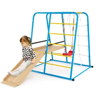 -----Rozbudź wyobraźnię dzięki naszej domowej siłowni 6 w 1! Wydłużona zjeżdżalnia z różnymi strefami i bocznymi rampami zapewnia małym dzieciom bezpieczną, ale ekscytującą zabawę. Huśtawka z regulowaną wysokością zapewnia wygodne i bezpieczne huśtanie się dzięki zakrzywionemu siedzisku i bezpiecznym zapięciom karabińczykowym. Oprócz tego, wewnętrzny plac zabaw zawiera również drążki do wspinaczki, ściankę wspinaczkową, linę do wspinaczki i drabinkę, co sprawia, że jest to centrum rozrywki dla dzieci w wieku od 3 lat, promujące naukę poprzez zabawę.