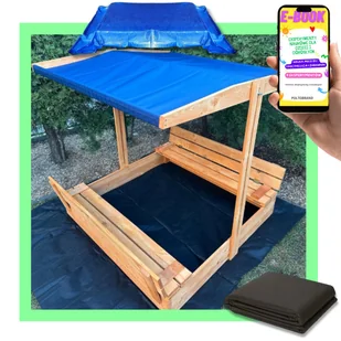 BESTSELLER PIASKOWNICA DREWNIANA ZAMYKANA Z DASZKIEM 120 cm + PLANDEKA + AGROWŁÓKNINA DUŻA XXL PREMIUM PREZENT DLA DZIECKA + EBOOK