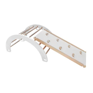 Domowy plac zabaw Sweet Plus Najważniejsze cechy produktu: naturalne materiały dwustronna zjeżdżalnia w zestawie estetyczny wygląd Dane Techniczne: wymiary bujaka: 94 x 63 x 45 cm wymiary zjeżdżalni: 96 x 37 cm dopuszczalne obciążenie: