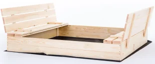 Zamykana pokrywa – zabezpiecza piasek przed zwierzętami i zanieczyszczeniami. Wbudowane ławki – zapewniają wygodę podczas zabawy i łatwy dostęp do piasku. Bezpieczna konstrukcja – gładkie krawędzie i stabilność dla spokoju rodziców. Uproszczony montaż – nawiercone otwory w deskach ułatwiają składanie. Materiały, które dbają o komfort i trwałość: